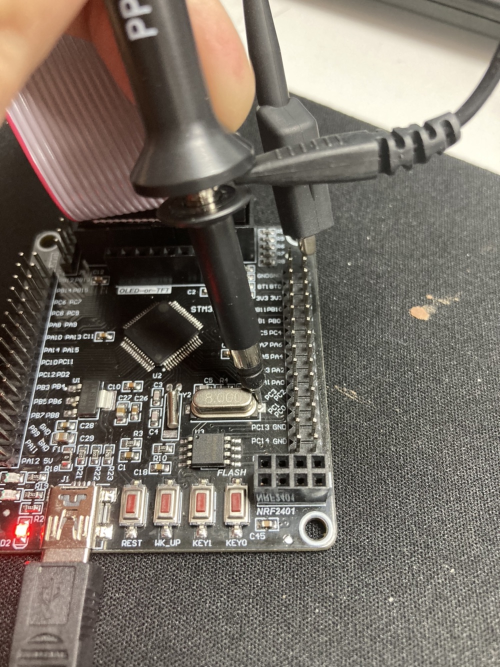 집개로 그라운드를 집어주고 5V에 프로브를 갖다 대면 신호가 바뀐 것을 확인할 수 있습니다.