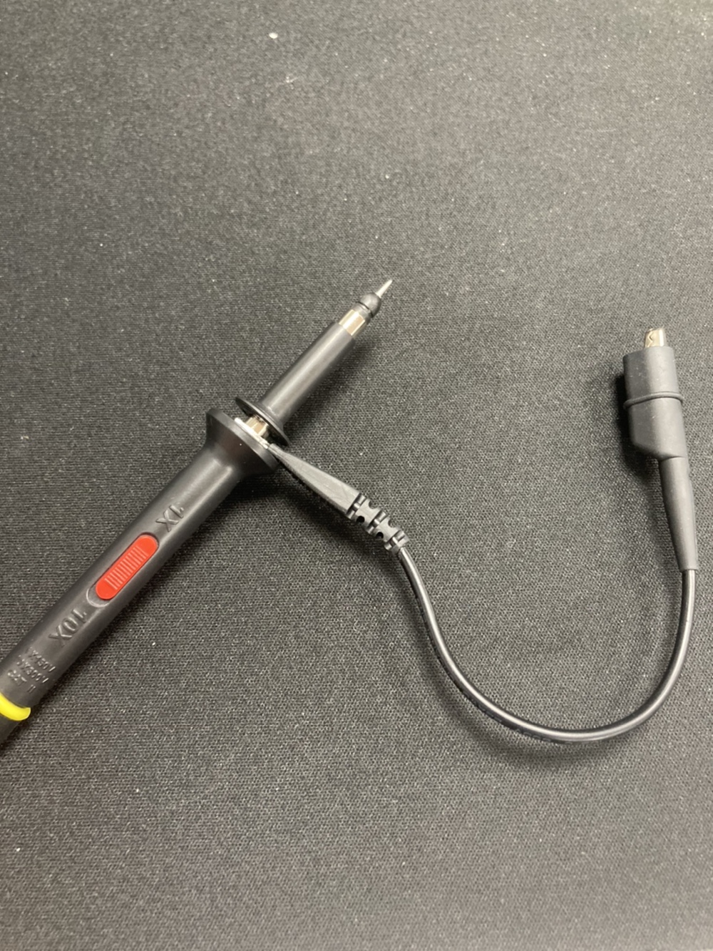 오른쪽 집게로 그라운드를 집고 오른쪽 펜으로 측정합니다.